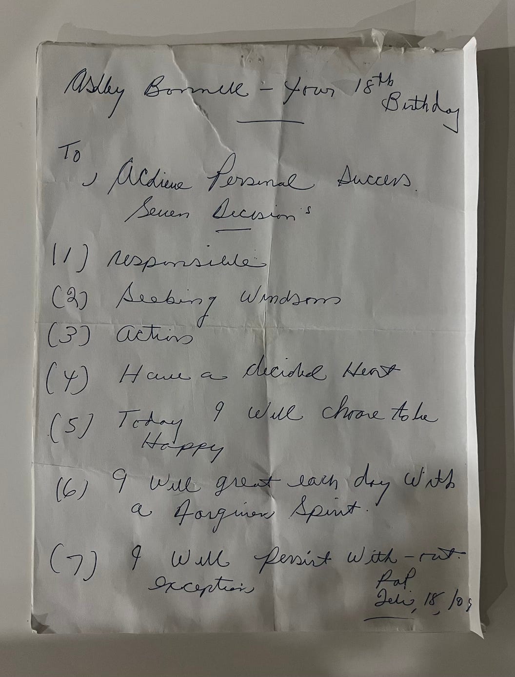 It was a note my pop wrote to me when I was 18 years old—something I had kept all these years without realizing how much it would mean to me now. I smiled seeing it there, now on the wall in my kiddo’s playroom, like his wisdom was quietly watching over the next generation.